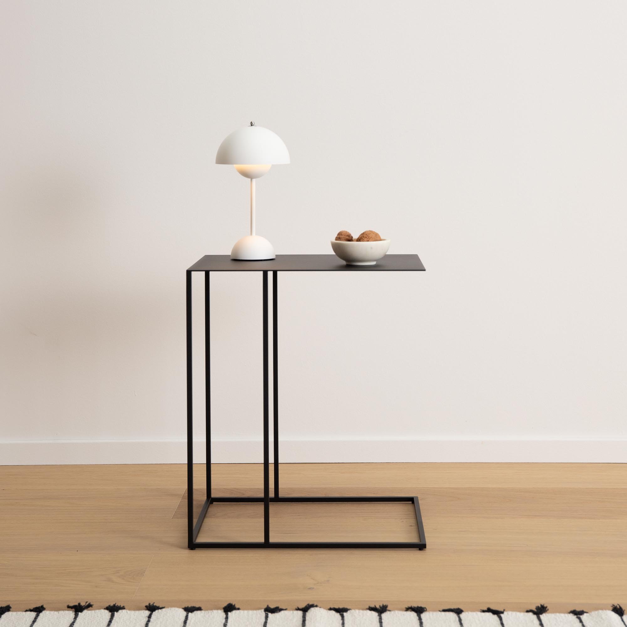 Durch die offene C-Form lässt sich THEO mühelos übers Sofa ziehen und schafft damit eine komfortable Ablagefläche. So sind Drinks, Laptop oder das Lieblingsbuch stets griffbereit.