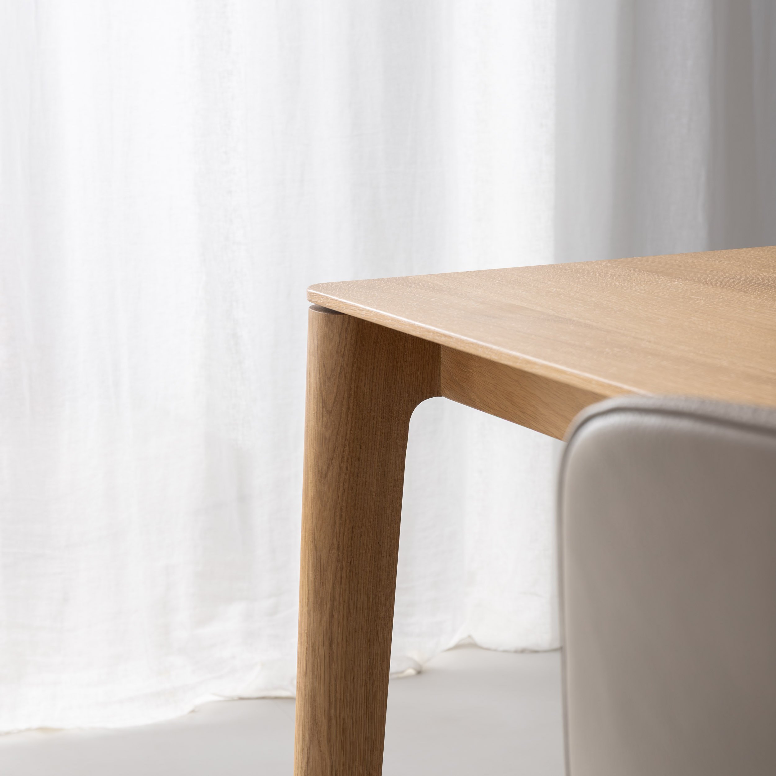 FRIEDRICH wirkt leicht und klar – und dass trotz seiner stabilen Bauweise. FRIEDRICH wird komplett aus Massivholz gefertigt und erhält durch moderne Details seine minimalistische Ausstrahlung. Eine Schattenfuge zwischen Füßen und Oberfläche, die dem Esstisch fast etwas Schwebendes verleiht und die schmale Sichtkante der Tischplatte machen das Design von FRIEDRICH unverwechselbar.