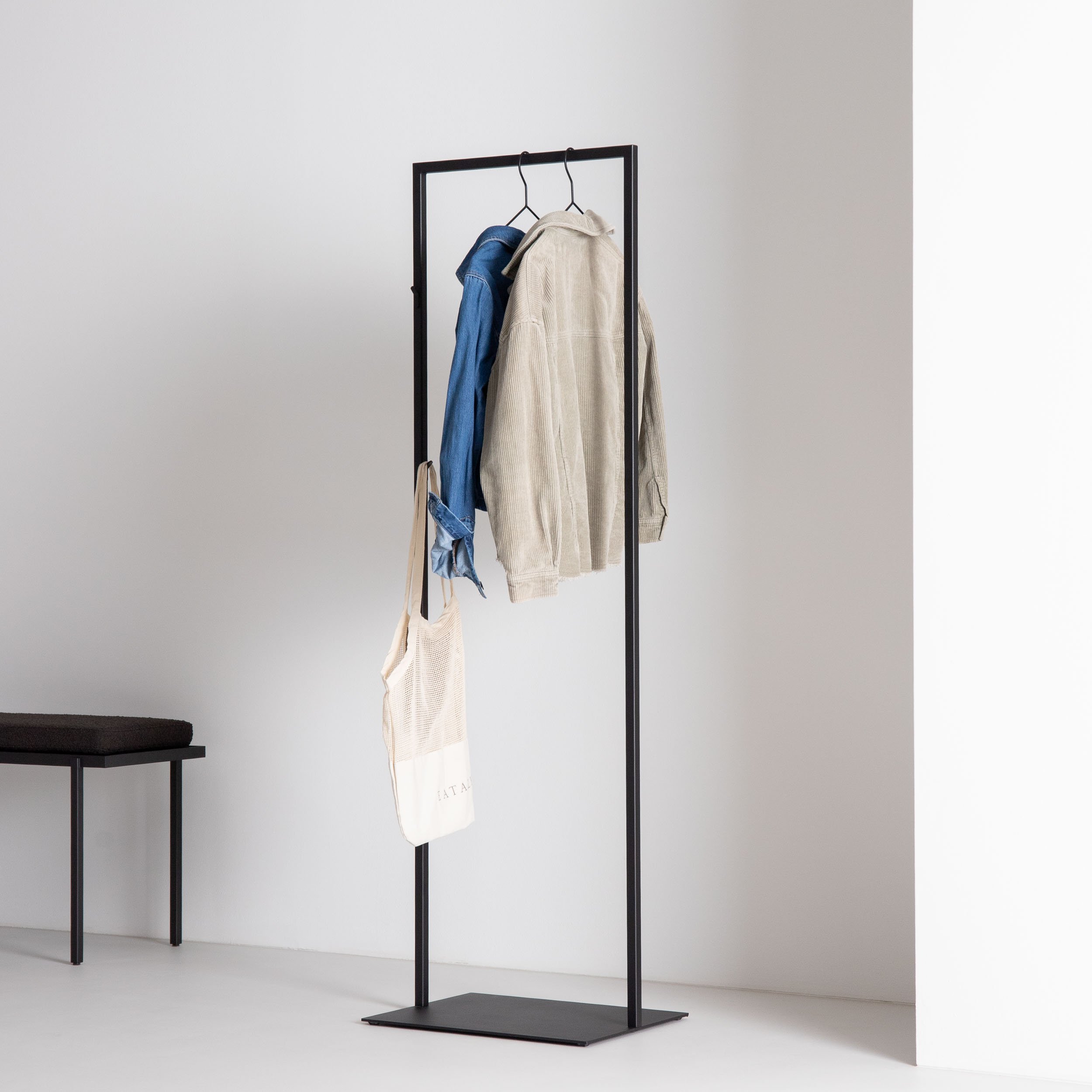 Klares Design mit ungewohnt hoher Praktikabilität. Ob im Flur als Garderobenständer oder im Schlafzimmer zur Aufbewahrung getragener Kleidung, ULLA fügt sich überall hervorragend ein. Neben der oberen Kleiderstange ist ULLA mit zwei dezenten Häkchen ausgestattet – super für alles, was nicht auf einen Kleiderbügel soll. Für sicheren Stand sorgt eine stabile Bodenplatte. Die Garderobe wird in unserer Manufaktur von Hand gefertigt.