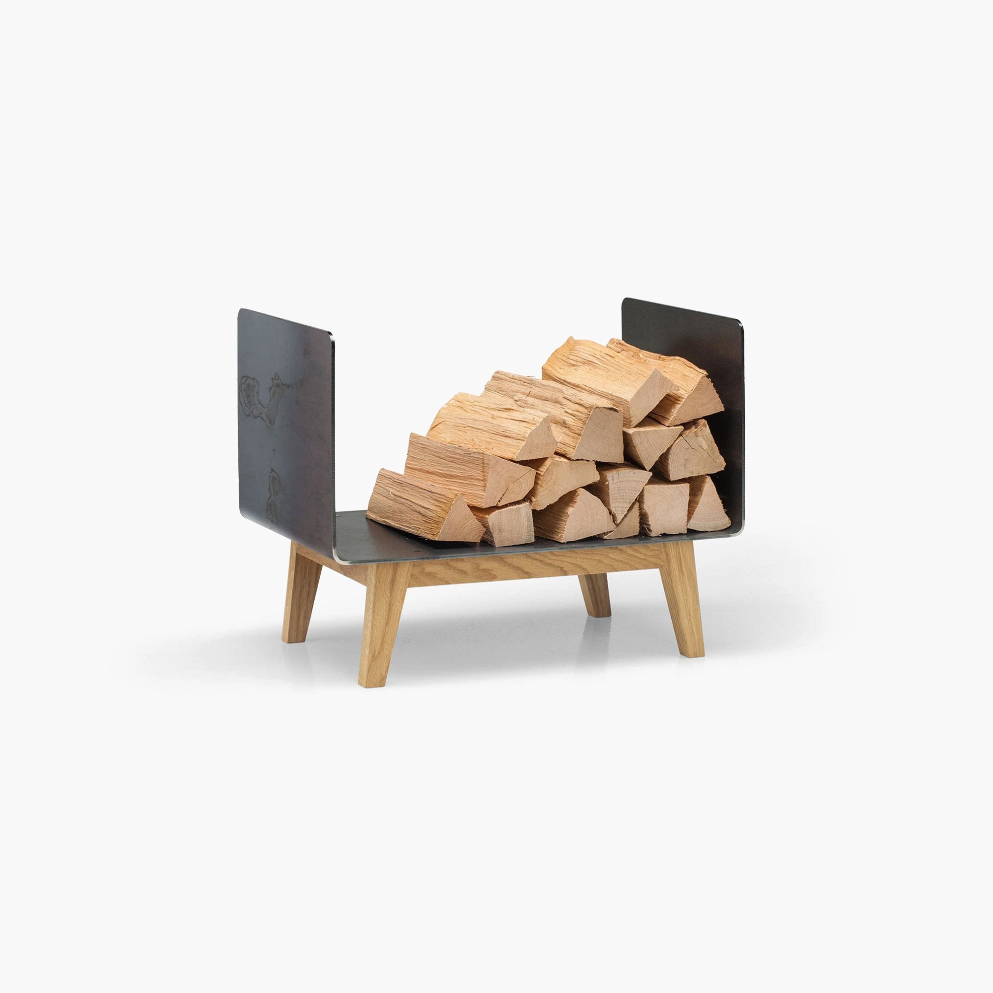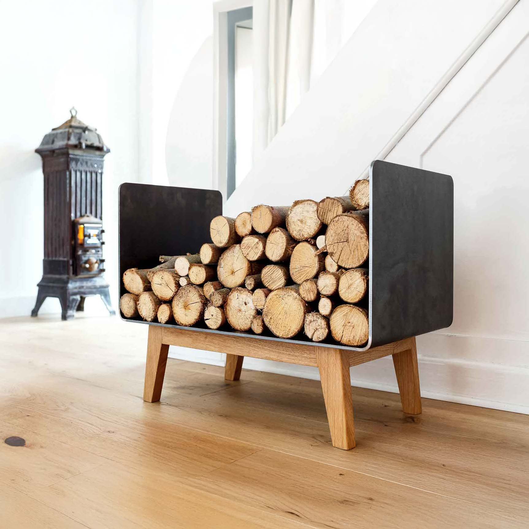 Das Kaminholzregal fürs Wohnzimmer: FERRA vereint den industriellen Charme von Metall mit der Natürlichkeit edel verarbeiteten Massivholzes. Durch das kompakte Design findet es selbst in der kleinsten Wohnung Platz und verwandelt Ihr Brennholz zu einem schönen Blickfang.