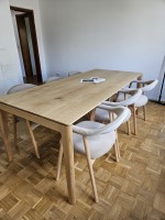 FRIEDRICH verbindet ein feines Design mit einer soliden Konstruktion. Die 25 mm Tischplatte gibt dem Esstisch seine Stabilität, doch durch die dünne Sichtkante wirkt er trotzdem filigran und leicht. Die geölte Oberfläche bringt Widerstandskraft, eine schöne Haptik und eine gute Reparierbarkeit mit sich. FRIEDRICH ist in europäischer Eiche und in amerikanischem Nussbaum erhältlich und lässt sich in unterschiedlichen Größen bestellen.